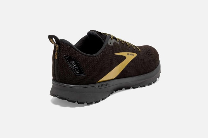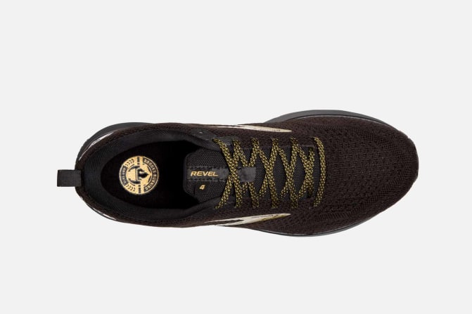 The versatile Brooks men's Revel 4 road-running shoe offers street-ready style plus a springy ride. Responsive cushioning and sleek knit upper offer total comfort.